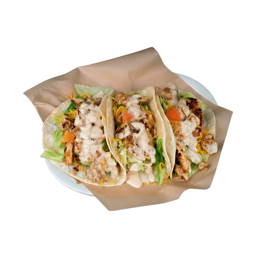 Grilled chicken breast strips covered with a blend of jack and cheddar cheese, lettuce, diced tomatoes & our special chipotle sauce. 3 flour tortillas.