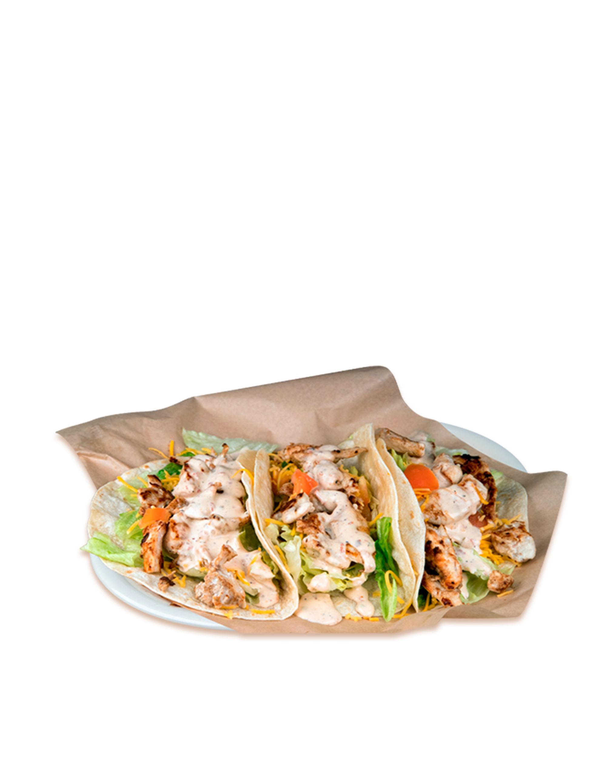 Grilled chicken breast strips covered with a blend of jack and cheddar cheese, lettuce, diced tomatoes & our special chipotle sauce. 3 flour tortillas.