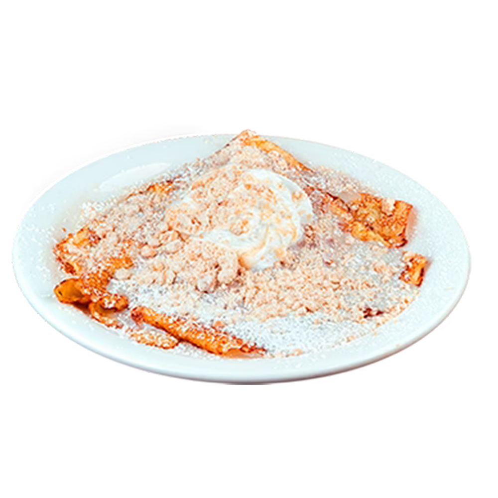 2 crepes topped with Mazapán mexican dessert and our delicious Mazapán cream.