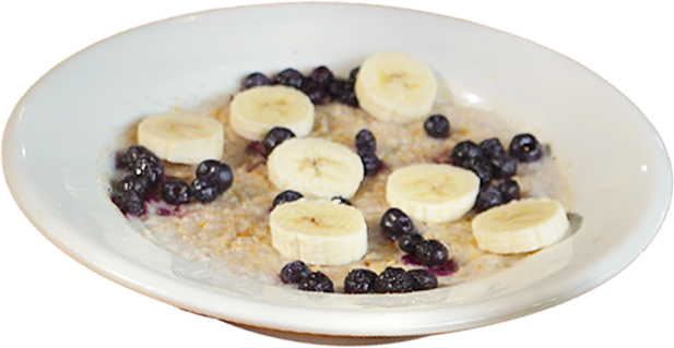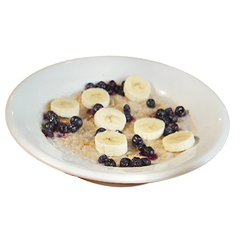 Blueberries, bananas & oatmeal with a side of milk, honey & brown sugar.