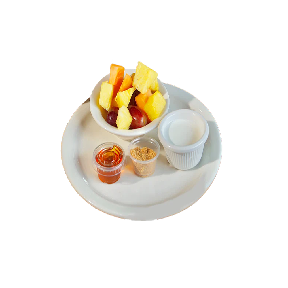 A mix of seasonal fresh fruits typically including melon, grapes, pineapple, and berries.